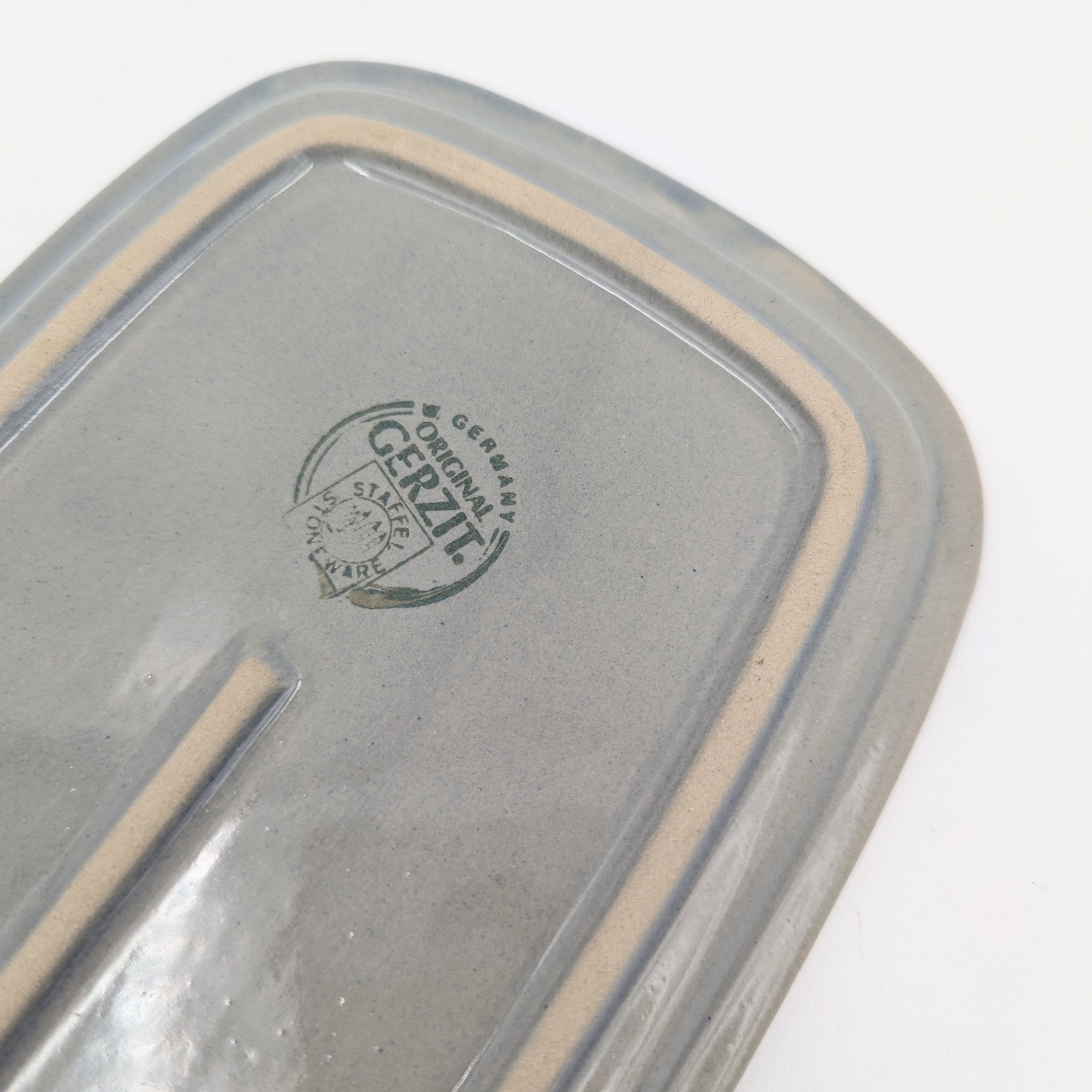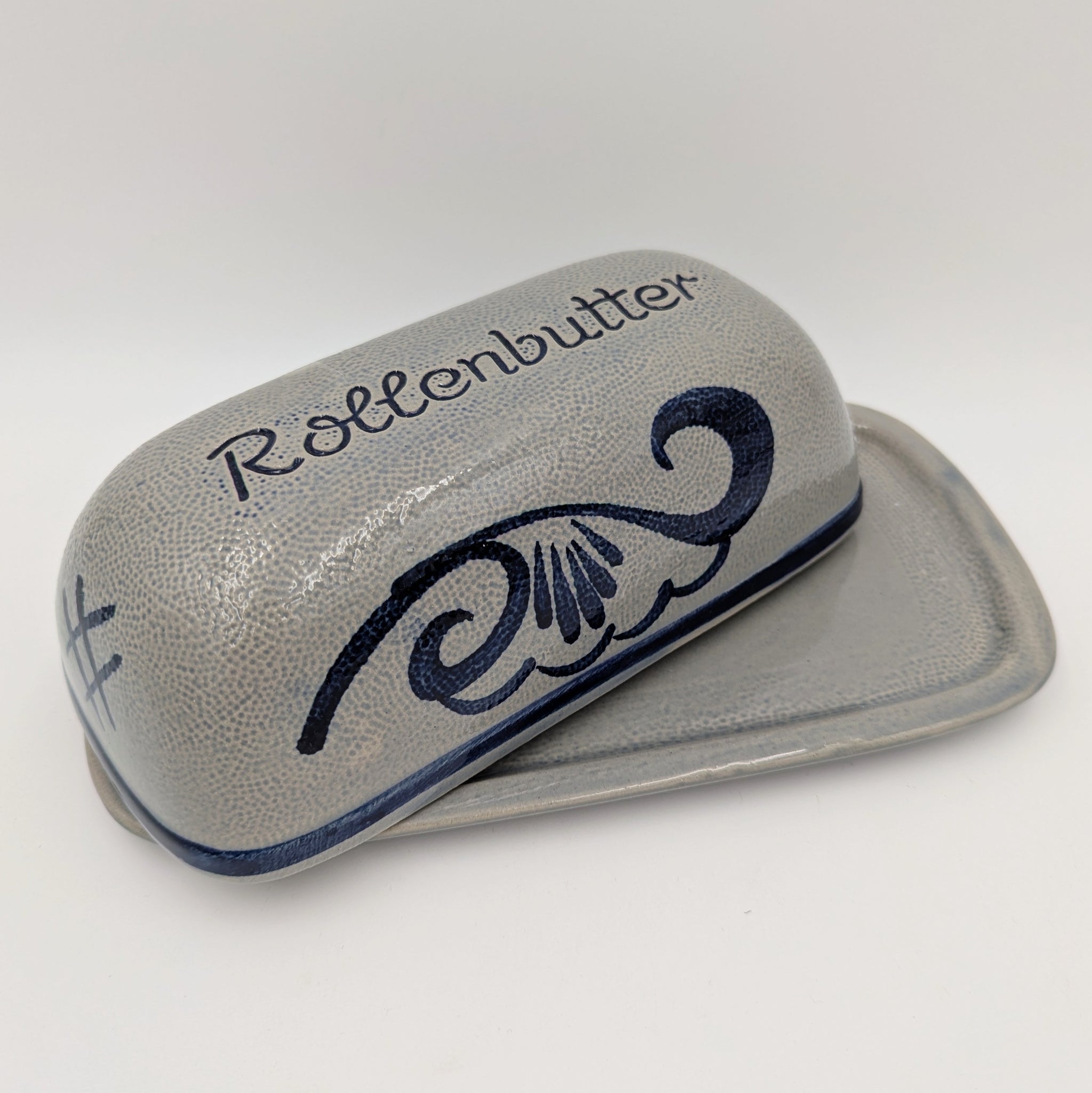 Klassische Rollenbutterdose aus Steingut von der Marke Gerzil. Die Butterdose befindet sich in einem sehr guten Zustand.