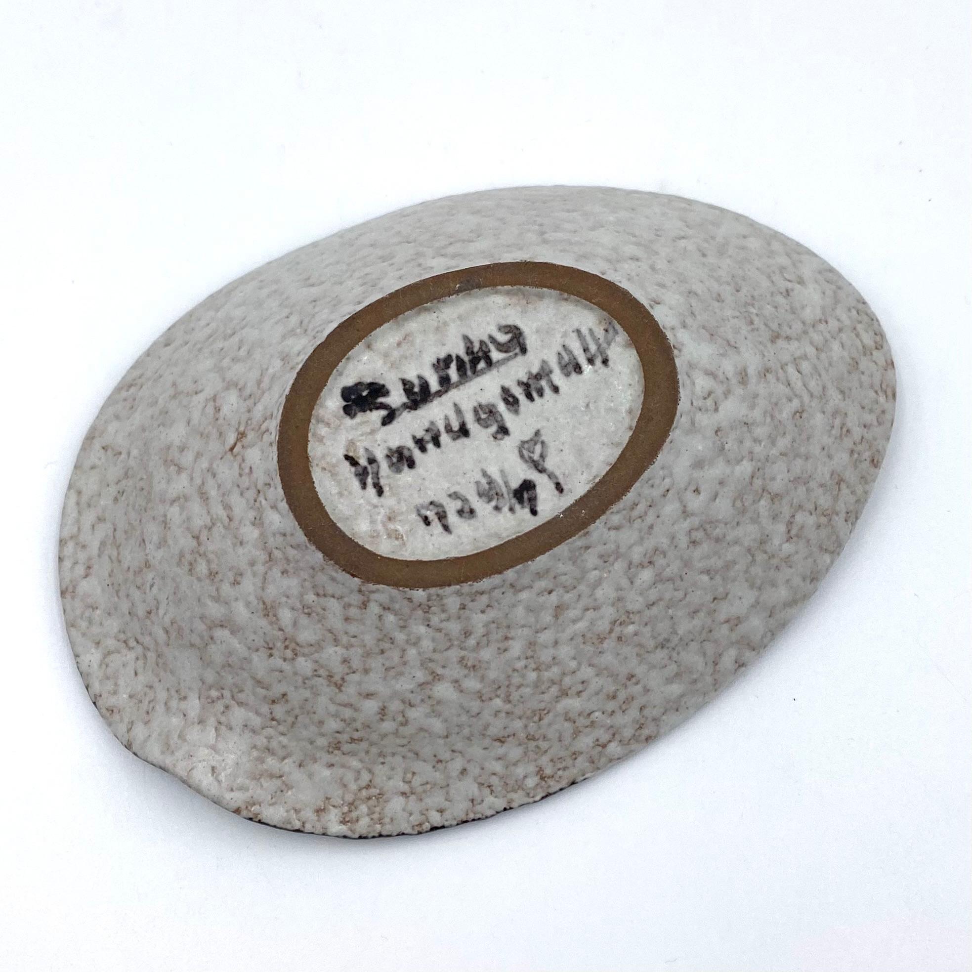 Handbemalte kleine Schale aus den 50 er Jahren von Ruscha Keramik. Das kleine Schälchen ist 14,5 cm lang10 cm breit und 3 cm hoch. Sie befindet sich in einem guten Zustand.